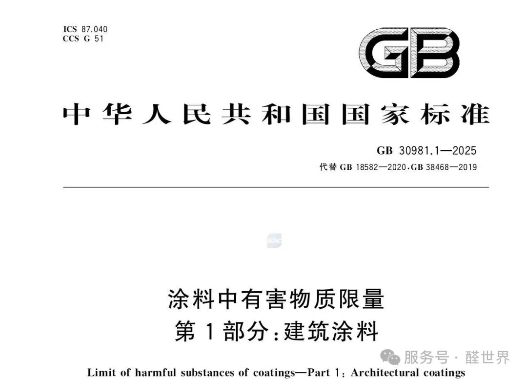 2026年6月1日,GB 30981.1-2025《涂料中有害物質(zhì)限量第1部分:建筑涂料》將正式實(shí)施。